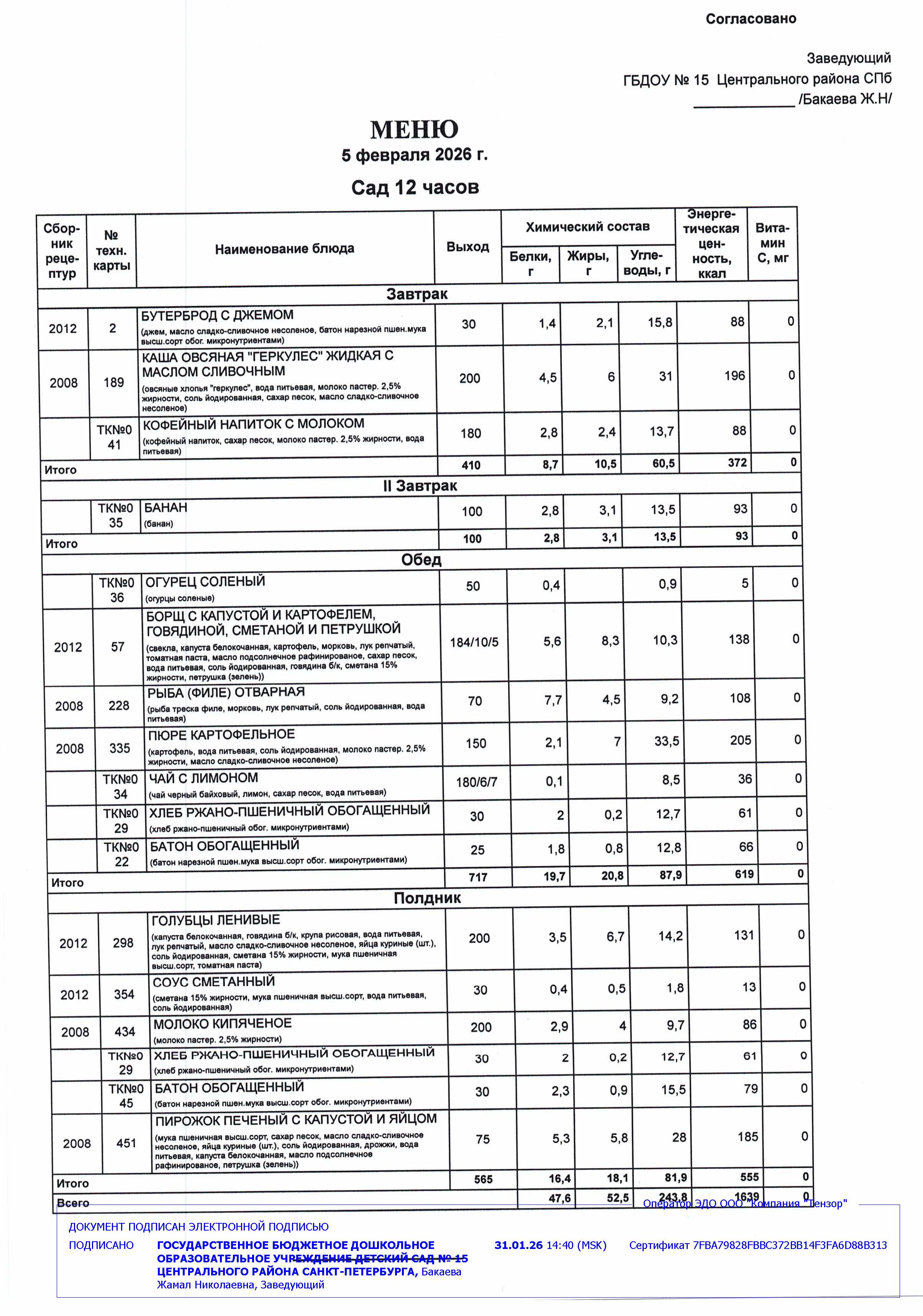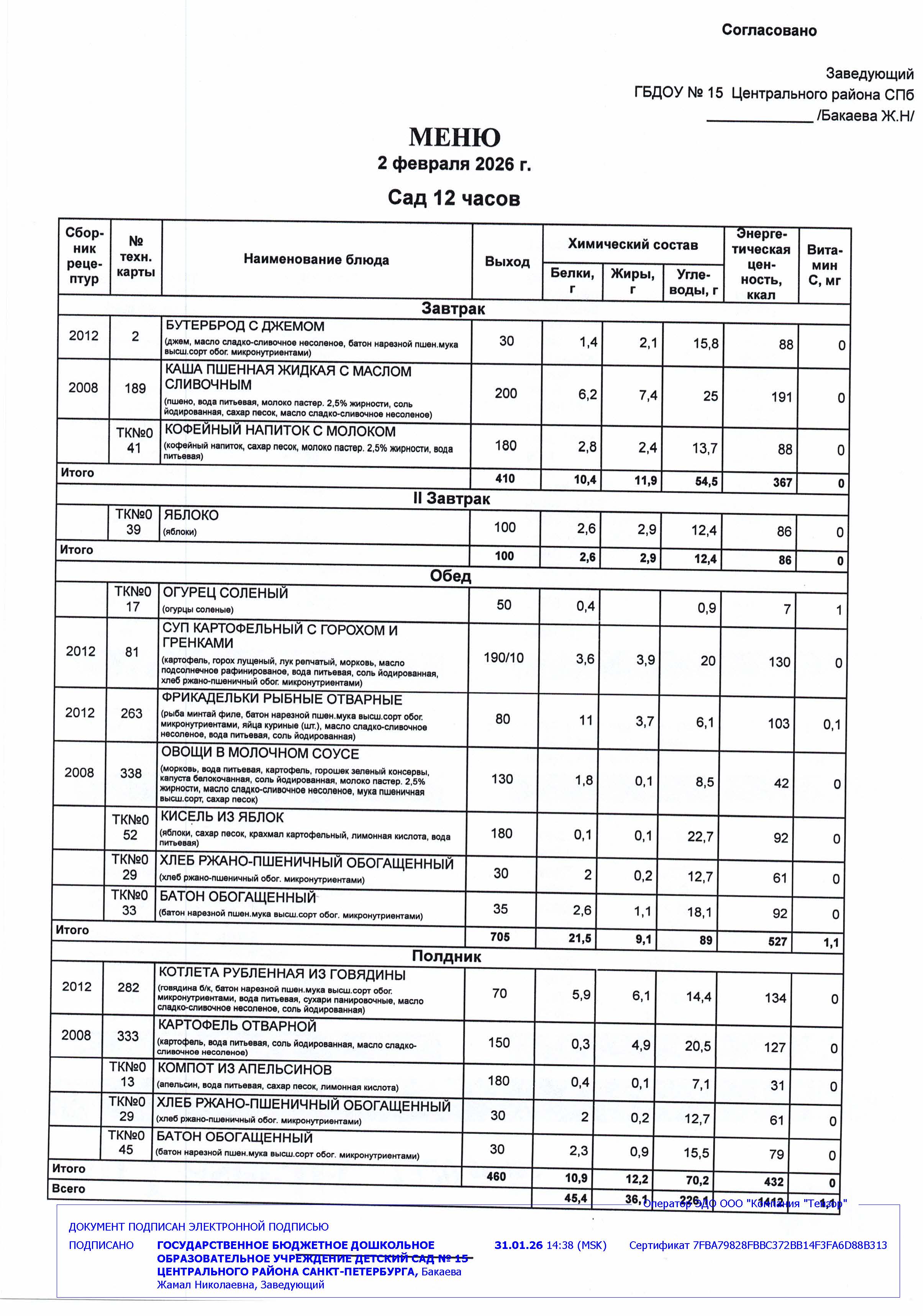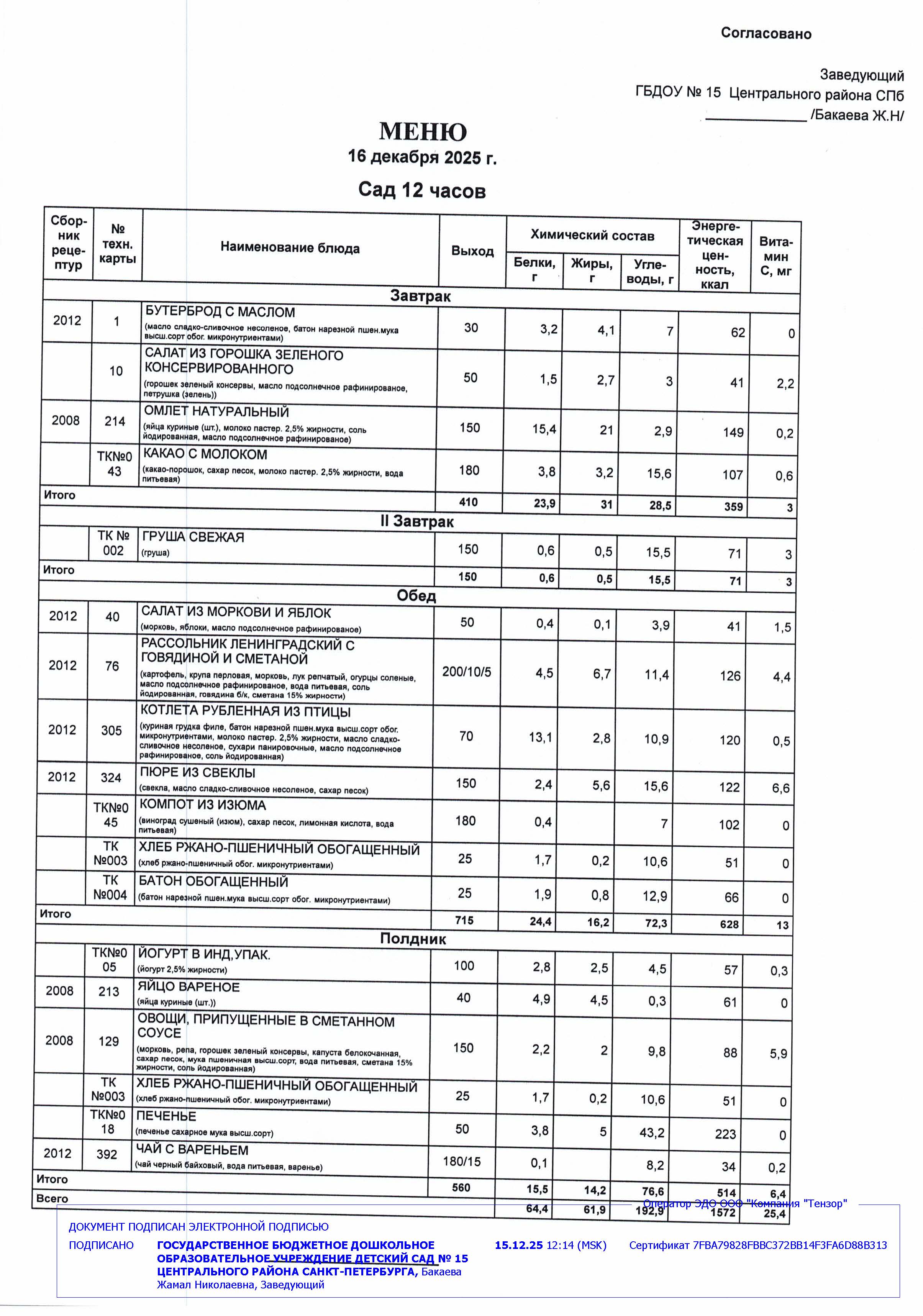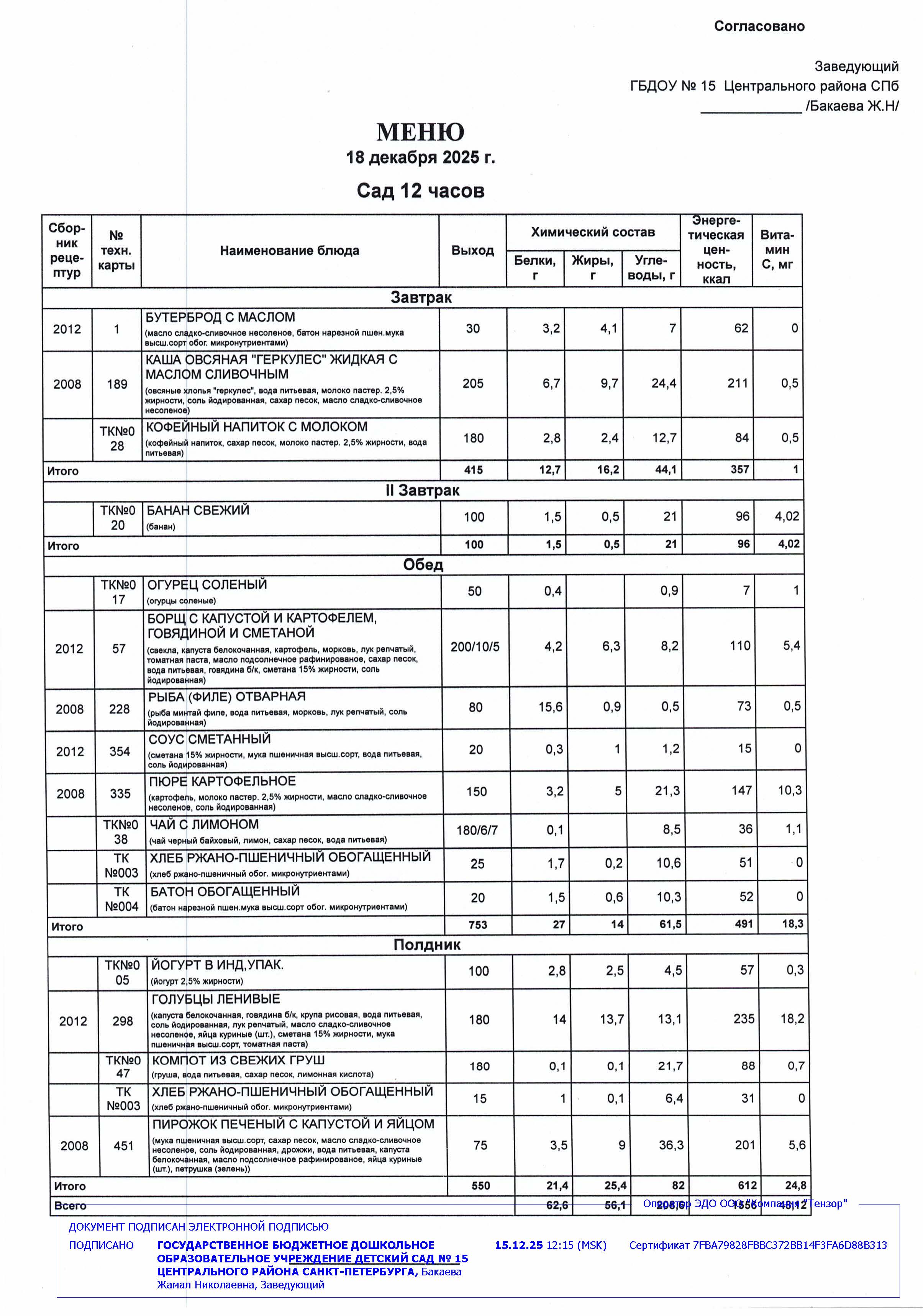 По всем вопросам организации питания в ГБДОУ №15 обращаться к заведующему ГБДОУ
